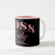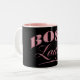 Uma versão moderna e elegante do nosso design de caneca de presente de Dama do Chefe com letras cor-de-rosa num fundo preto para dar é um presente ou apreciar para si próprio.