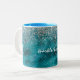 Miniatura Teal Silver Sparkle Caneca personalizada com brilho falso (não brilho real, imagem de brilho)