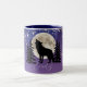 Caneca De Café Em Dois Tons Silhueta de lobo e lua sob as estrelas