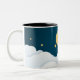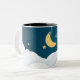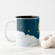 Uma lua crescente está amarrada com cordas contra um céu noturno acima de nuvens brancas lisas. As estrelas ouros salpicam o fundo do céu noturno cobalto com sua própria mensagem nas estrelas. Unísex e versátil para qualquer celebração ou uso diário. Disponível com produtos correspondentes.
