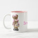Personalize esta caneca adorável com o seu próprio texto. Trabalho de arte primitivo do campo de um ursinho de pelúcia todo vestido, e segurando um ursinho de pelúcia bebê nos braços. Uma caneca de presente bonita para meninas ou qualquer mamãe para ser ou mamãe nova.