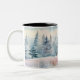 "Aproveite seu café ou chá com esta caneca artística, apresentando uma terra maravilhosa pacífica do inverno em tons de água suaves. Este design versátil é perfeito como ele é, ou você pode personalizá-lo adicionando seu próprio texto sobre o fundo suave. Uma bela mistura de arte e função, ela faz um presente ou uma manutenção maravilhosos para a estação de inverno