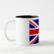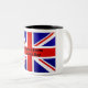 A caneca branca/preto para dentro com Union Jack no centro & no centro da bandeira "todos ama um menino britânico"