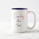 Esta caneca latta de 15 onças de cerâmica apresenta um marcador para qualquer nome com o ditado, "Um dia de cada vez", em azul e vermelho marinho. Também disponível no tamanho de 11 onças. Segurança e máquina de lavar louça para micro-ondas.