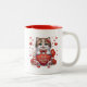 This ceramic coffee mug is shown with a cute Valentine kitten hearts print.
