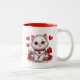 This ceramic coffee mug is shown with a cute Valentine kitten hearts print.