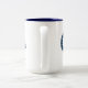 Nosso logotipo e nosso lema em uma caneca de café de duas tonalidades.