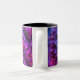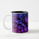 Striking fractal blossom art with vivid tones of violet, pink and purple on stunning two tone coffee mugs.
