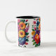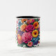Caneca De Café Em Dois Tons Vibrantes Zinnias e Cosmos Floral Design