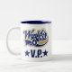 Dê um colega de trabalho, um membro da família ou um amigo presente de Vp dos mundos um melhor com logotipo do estilo dos esportes dentro e azul e tan. Faz uma grande ideia do presente para um vp ou um vice-presidente.