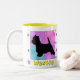 Estes camiseta e presentes brilhantes e animadores de Westie têm colorido espirram de roxo, de azul, e o rosa em quadrados pontilhados polca. É no centro uma silhueta grande da raça do cão preto. O nome da raça é imprimido no amarelo em torno da parte externa, incluindo impressões pastel da pata, e naturalmente, uma margarida branca grande do hippie no canto! Artigos bonito e originais de Terrier branco de montanhas ocidentais. Totalmente groovy!