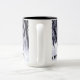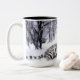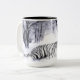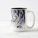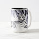 Tigre branco bonito com listras pretas e olhos azuis que encontram-se na neve.