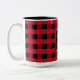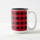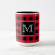 Personalize sua caneca com um monograma nesta xadrez clássica de búfalo vermelho e preto.