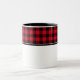 Esta caneca de café cerâmica é mostrada com um impressão de xadrez de búfalo preto e vermelho. Personalize este item ou comprar como está. Imagem do stock freepik.com all-free-download.com
