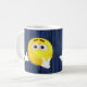 Caneca de café na moda do emoji em um fundo de madeira azul. © do design por Nayda Liz Rivera