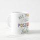 "Encha sua caneca com inspiração. Cada sip é um lembrete para acreditar no poder da possibilidade." Esta descrição: liga o design à funcionalidade da caneca (enchimento com líquido). Mantém a mensagem motivacional. Cria uma sensação de empoderamento através da crença.