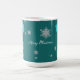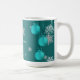 Aproveite seu café matinal nesta temporada de festas com um Teal Enfeites de natal Coffee Mug. Mug design apresenta um trio de Enfeites de natal pendurados em cada lado da caneca com flocos de neve em queda e um fundo negro. Itens adicionais de presentes e feriados disponíveis com este design também.