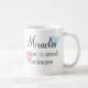 Sorva em sua bebida quente da manhã diária ao sorrir com esta caneca de café personalizada da enfermeira de NICU. Caracteriza uma enfermeira de cabelo preta adorável que guardara um bebê e acentuada com corações cor-de-rosa e azuis. O outro lado lê "milagre vem em pacotes pequenos". Personalize a caneca a todo o nome. O café ou o chá nunca provaram melhor do que nesta caneca do surpreendente adorável e divertimento.