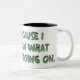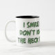Eu sorrio porque eu não sei o que está acontecendo. Caneca de café engraçada com provérbio cómico. Grande presente para ele ou ela.