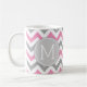 Canecas de café engraçadas da prescrição com monograma personalizado. Escreva sua própria prescrição! Adicione seu nome, seu doutor, seu café favorito e mesmo suas próprias instruções! Faça se engraçado, faça-lhe seu! Teste padrão branco, cor-de-rosa e cinzento de Chevron.