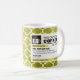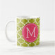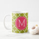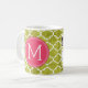 Canecas de café engraçadas da prescrição com monograma feito sob encomenda. Escreva sua própria prescrição! Adicione seu nome, seu doutor, seu café favorito e mesmo suas próprias instruções! Faça se engraçado, faça-lhe seu! Teste padrão de Quatrefoil do branco e do verde limão. Adicione seu próprio monograma feito sob encomenda! Selecione suas próprias pias batismais!