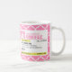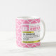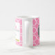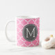 Canecas de café engraçadas da prescrição com monograma feito sob encomenda. Escreva sua própria prescrição! Adicione seu nome, seu doutor, seu café favorito e mesmo suas próprias instruções! Faça se engraçado, faça-lhe seu! Teste padrão cor-de-rosa de Bubblegum Quatrefoil. Círculo cinzento escuro com monograma branco.