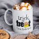 Trick ou trate com este doce doce, engraçado e balbucioso do Halloween. Estes adoráveis cornos doces estão felizes e prontos para se divertir nas suas festividades de Halloween. As laranjas brancas, amarelas e pretas, com olhares sorridentes desenhados e rostos sorridentes, são bonitas e podem ser personalizadas de acordo com o seu gosto. Esta design apresenta pipoca doce engraçada e colorida, truque ou guloseimas, legal ilustração gráfica divertida, cara sorridente de bobo branco, outono de outubro Presente de Halloween, xícara de café, tipografia simples e fofa minimalista, truque ou citação dizendo, humor ilustração de Halloween, trabalho de arte de laura lacina