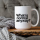 Esta engraçada caneca de café branca e preta certamente trará um sorriso para a cara! Apresenta uma tipografia branca e negra com a frase familiar "O que é normal mesmo assim?" Projetado para Mug de 15 onças também disponível em 11 onças. Segurança para utilização em micro-ondas e máquinas de lavar louça.