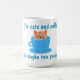 Uma caneca de cerâmica branca com gráficos animados de desenho animado de um dentro de gato laranja com um copo de café azul. O texto azul diz que eu gosto de gatos e café e talvez duas pessoas. A ideia de presente de excelente para qualquer gata.