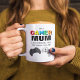Mãe também gosta de jogos! Veja este café de jogador de tendências para Mães de jogadores! Com o título 'Eu sou uma MÃE GAMER, como uma mãe normal, muito mais legal!', e dois controladores de jogos.