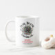 Engraçado Coffee Mug. Design apresenta uma ilustração de luzes de fada de natal enroladas e a engraçada legenda "I'M FINE. ISSO ESTÁ BEM. TUDO ESTÁ BEM", uma mensagem de Feliz Natal e nome da família.