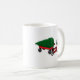 Entrega da árvore de Natal em um pequeno vagão vermelho, estilo triciclo. Um presente retrô muito bonito.