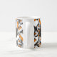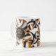 Essa equipe de vôlei colorido a caneca de café para ela apresenta um bando de volichões laranja, preto e branco arranjados em um formato aleatório e tridimensional - cada um dos painéis preto e laranja do volleyball é misturado com um padrão caleidoscópico floral para um aspecto texturizado - personaliza o nome do treinador em um lado da caneca e o nome da equipe, nome da escola e estação esportiva/ano katz _d_zynes