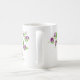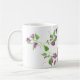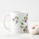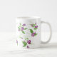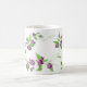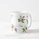 Esta caneca de café cerâmica é mostrada com um adorável impressão de ervilhas doces roxas. Personalize este item ou comprar como está. Imagem do stock