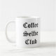Bela caneca de café com "Coffee Selfie Club" escrita de forma espelhada de um lado e regularmente do outro. Perfeito para selifes de câmara!