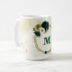 Lindas flores esmeralda verde marfim branco e dourado com folhas douradas monograma caneca de café.