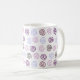 Esta caneca tem um design de arte em espirais em tons de roxo, azul claro e marrom, em um campo de branco. Se você quiser o mesmo design com cores diferentes, me mande uma mensagem.