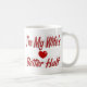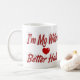 Mug com eu sou a melhor metade da minha esposa em texto vermelho 3D. Disponível em vários tamanhos e estilos.