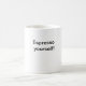 Aqui está uma ideia para todos os amantes de bebidas quentes. Uma caneca com as palavras "Espresso você mesmo!" para inspirá-los e motivá-los com seu café matinal. Uma tipografia simples e preta em branco.