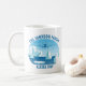 Legal presente de caneca de férias no Alaska para sua viagem familiar com glacier e design de oceano e seu nome personalizado. Icebergs flutuam no mar sob um avião azul nesta lembrança de manutenção da exploração ártica de bonés de gelo no oceano Pacífico.
