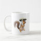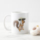 Um esquilo segura um cogumelo como um guarda-chuva nesta caneca fofa.