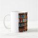 Design ilustrado de uma estante larga com uma variedade de livros coloridos