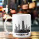 Personalize estas canecas de férias de Nova Iorque chic para a viagem da sua família à grande maçã. Apresenta um desenho excelente preto e branco do horizonte de Manhattan e da Estátua da Liberdade acima do seu texto personalizado. Legal arranha-céus para a sua viagem.