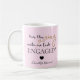 Este é um belo rosa pincelado ' Este Anel Faz-me Parecer Envolvido' em um roteiro elegante Future Mrs. Mug. Perfeito para as noivas serem o plano do casamento.