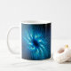 Uma imagem fractal monocromática semelhante a uma intrincada gravação de uma estrela multiarmada, ou multiasa, em metal azul ou plástico. Personalize adicionando seu próprio texto.
