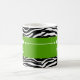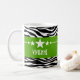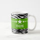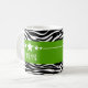 Trendy e moderna Sassy Star Zebra Mug apresentando um fundo de impressão em branco e preto chico e uma ousada borda verde encantadora adornada com um divertido motivo de estrela. Este design feminino pode ser personalizado com o texto personalizado de sua escolha. Clique em "Personalizar" para encontrar mais opções de personalização.