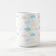 O fundo do padrão é uma cor pastel macia, como lavanda, verde de menta ou pêssego. Isto cria uma atmosfera serena e calmante que é perfeita para o quarto de um bebê.