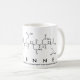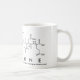 Etienne soletrado em aminoácidos como E T I E N E (ácido glutâmico Troonina Isoleucina Ácido glutâmico Asparagina Asparagina Ácido glutâmico) numa caneca para o cientista em si.