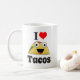 Tacos de manhã, tacos à noite, tacos à hora de jantar! Qualquer hora do dia é uma hora excelente para expressar seu amor pelos tacos, mesmo quando você está bebendo seu café da manhã! Esta caneca de taco de desenho animado e engraçada colocará um sorriso na sua cara toda vez que você a usa. A cor e a fonte do texto podem ser alteradas para ajustado de sua preferência. Tacos — yum!