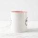 Uma caneca de café branca com "I Love Double D" no lado 1 e "Eu não gosto de pessoas matinais" no lado 2.